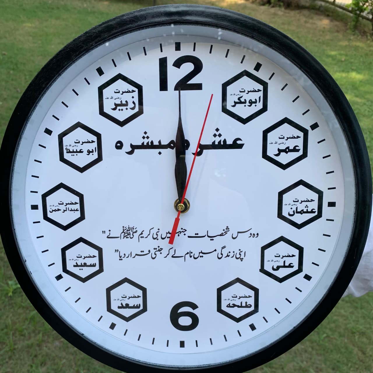 🕰️ Unique Islamic Design – Features the names of the Ashra Mubashra (10 promised Jannah).