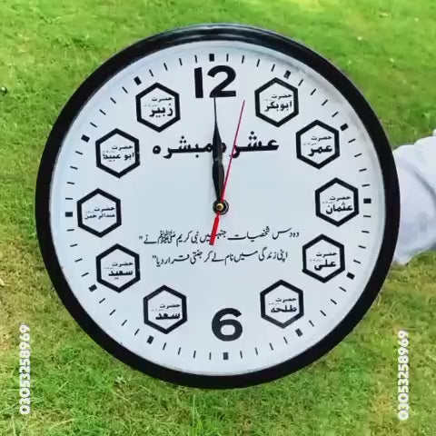 “Islamic Ashra Mubashra Wall Clock – Blessed Companions of the Prophet ﷺ”
